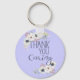 A maneira perfeita de mostrar seu apreço a um cuidador. Este belo chaveiro floral mostra a mensagem "Obrigado por se importar. Este design funcionaria bem para os prestadores de cuidados ou assistentes que cuidam de um familiar idoso num centro de assistência, funcionarios de apoio ao cancer - ou para os trabalhadores domésticos que visitam um membro da família com deficiência. Adequado também para médicos e enfermeiros! Em lavanda macia com flores brancas e azuis escuras, ela faz um presente bonito e atraente.