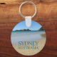 Sinta-se como se estivesse lá, em Sydney, Austrália, com esta corrente de na moda. A design apresenta uma fotografia de um tipo dos céus azuis e ondas aqua de Seal Rocks, na costa de Sydney, Austrália, e o texto de na moda apresenta as palavras "Sydney Australia".