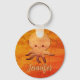 Um polvo de desenho laranja giro. Faux gravou polvo bebê. Chaveiros personalizados com nomes personalizados. Tudo o que se vê está impresso. Não será utilizada madeira nem gravura no fazer destes encantos. Ideia do presente.