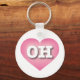 Este chaveiro apresenta um coração cor-de-rosa, calma, legal e colecionado com um centro lavado em branco contendo as letras maiúsculas brancas em negrito OH, a abreviação oficial para Ohio, o estado do buckeye.