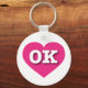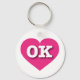 Este chaveiro apresenta um coração rosa-quente vibrante contendo as letras maiúsculas, brancas e em negrito OK, a abreviação oficial para Oklahoma, o estado mais rápido.