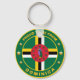 A bandeira nacional da Domínica é infundida numa forma circular, que ela própria, é decorada nas cores da bandeira. Além do texto, há 6 estrelas decorativas que atuam como mergulhadores.