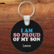 Estou Orgulhoso do meu filho transgênero. Uma bela chaveiro de apoio transgênero para uma mãe ou pai de um homem trans escrito em azul, rosa e branco da bandeira do orgulho. Uma forma excelente de mostrar a seu filho que você sempre os amará depois que eles lhe contarem sobre sua transição.