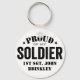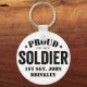 Você está orgulhoso de seu soldado, mostre-o com esta cadeia de chaves de texto personalizadas preto e branco.