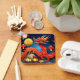 Dragão Vermelho Chinês numa cidade antiga à noite, no estilo Origami. Design no quadrado Chaveiro com a letra do ouro "Ano do Dragão" e o ideograma chinês amarelo para Dragão + monograma no verso. Cartão de saudação, cartão postal, adesivo e muito mais. Perfeito para o Ano Novo do Dragão Chinês ou aniversário (nascer pessoas no ano do Dragão).