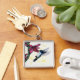 Chaveiro orquídea e beija-flor voadores fantasia aquarela