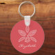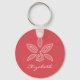 Um chaveiro simplista com uma elegante flor de orquídea em um simples fundo vermelho quente. Personalize esta design feminina mínima adicionando seu nome.