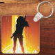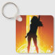 Uma mulher da discoteca numa pose de dança contra um ouro. Esta design parece realmente eficaz nesta Chaveiro