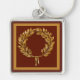 Grande chaveiro de metal de alta qualidade quadrada com uma imagem de uma coroa de louros de ouro sobre burgundy com borda dourada. Consulte botão quadrado correspondente e colar quadrado. Veja toda a coleção de Chaveiro Toga nos TOUCHES ESPECIAIS | Seção Favoritos para festas.