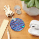 Um impressão de design da arte desenhada e pintada original. Esta curva azul, roxa e turquesa, forma de onda, é um rabisco de arte gráfico que foi inspirado pelas leves ondas do oceano que se abateram sobre a costa. Cores legal perfeitas para acessórios e para Summer.