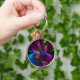 Abstrato Floral Moderno Vermelho Padrão Azul nº 15 Chaveiro redondo Premium