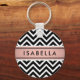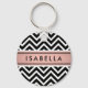 Acessem suas chaves em estilo com um chaveiro moderno chic. O design apresenta um padrão de ziguezague em forma de gesso preto e branco, uma faixa de folha de ouro bonito cor-de-rosa, cor-de-rosa, e o seu nome ou outro texto personalizado em uma simples fonte de tipografia negra. Este acessório elegante e moderno faz um presente na moda para ela. Perfeito como um favor de chá de panela ou festa de solteira, ou como uma ideia de presente de dama de dama de honra.