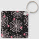 Uma cadeia-chave com um padrão uniforme fofo com aranhas e teias de aranha rosa.