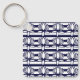 Chaveiro de Padrão de Stripe Floral do Flor do Lotus Padrão de listras florais de flores de lótus branco-marinho azul.