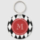 Chaveiro Padrão de Harlequin branco preto, monograma vermel