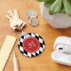 Este padrão de diamante de harlequin preto-e-branco, mod, mod, preto-e-branco, é um fundo perfeito para uma etiqueta de círculo vermelha e branca com o seu texto inicial em branco, numa letra elegante. GraphicsByMimi © Personalize este design de padrão em preto-e-branco, ousado, moderno e retrorreflector com seu monograma, texto, inicial ou nome. Use o campo modelo ou a opção "personalizá-lo" para um menu de edição de cheio. Um estilo clássico e tradicional emergindo como uma nova tendência de moda. Outras cores disponíveis.