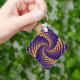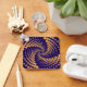 Um padrão cativante de pontos giratórios em matizes roxas e amarelas vibrantes. O design abstrato cria uma peça dinâmica e visualmente interessante que adiciona um toque ao estilo contemporâneo.