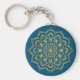 Chaveiro Padrão Floral de Mandala Azul Elegante e Dourado