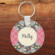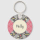 Um padrão de círculo de escribble rosa e um ouriço fofo e padrão de fruta. Personalize esta chaveiro adorável para ela com o seu nome.