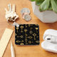 Padrão perfeito de chaves antigas, douradas e silhuetas em fundo preto.