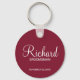 Presentes personalizados de Padrinho de casamento com nome de padrinho de casamento personalizado no estilo de letra branco do script moderno com título e data de casamento no estilo de letra sans serif moderno em fundo vermelho burgundy. Perfeito também para o melhor homem, pai da noiva, dama de honra, madrinha de casamento, mãe da noiva e muito mais.