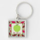 Um chaveiro que caracteriza um fundo de paisley. Ilustração verde da maçã dentro do quadrado no centro. Personalize com seu nome.
