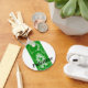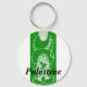 Um chaveiro com a foto de Handalah em um fundo verde com a palavra "Palestina" no fundo.