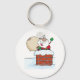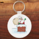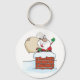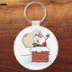 Papais noeis no topo de uma chaminé com neve ao seu redor. Esta design parece realmente eficaz nestes Chaveiro