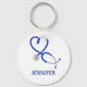 Crie um presente personalizado divertido para a sua enfermeira ou médico favorito. Este chaveiro apresenta uma ilustração fofinha de um estetoscópio azul em forma cardíaca com um nome abaixo em azul correspondente.