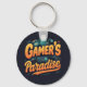 Um design gráfico vibrante e nostálgico que apresenta o texto "Paraíso dos Jogadores" em uma fonte divertida e pixelizada que lembra videos games clássicos. O design incorpora elementos de aventura e exploração, com uma paleta de cores que evoca sentimentos de entusiasmo e nostalgia. A composição geral é dinâmica e convidativa, apelando aos jogadores de todas as idades.