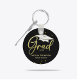 Este design apresenta um presente de formando de graduação, uma letra de texto do roteiro de caligrafia dourada, um favor de chaveiro, uma classe elegante moderna de mais velho, um presente personalizado personalizado, chaves personalizadas únicas e legal, uma tipografia mínima minimalista simples, um segundo grau ou um formando universitário, presentes de favores festa de formatura, um presente de favor divertido partido religioso.