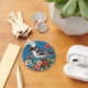 Ilustração colorida mostrando um pássaro empoleirado com dentro de um quadro floral circular, cercado por flores vívidas, evocando beleza, natureza e artista.