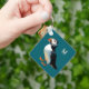 Adicione um toque à beira-mar ao seu dia com este bonito toque de chupão. As fotos do toque-chave de um sopro do Atlântico, colocadas contra um fundo de turquesa escuro e rico. Capturando o caráter desta ave marinha icônica, este encantador toque é um cheio de charme costeiro. Personalize com uma inicial para o toque final. Um presente ideal para amantes de pássaros e todos buscando por acessórios temáticos da vida selvagem do oceano.