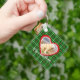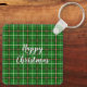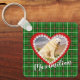 Esta maravilhosa chaveiro de natal é uma celebração amorosa do seu amigo fiel. Há um design de fundo no estilo tartan em vermelho, verde e branco na frente e atrás. Carregue sua foto favorita e adicione um nome ou outro texto curto. A foto está enquadrada em um coração vermelho com uma cobertura de pegadas brancas. No verso há mais texto personalizável (o padrão é simplesmente "Feliz Natal").