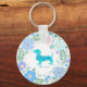 A soft pastel blue flower wreath frames your Dachshund silhouette on this customizable keychain. Personalize the front with your dog's name under the silhouette. Upload a cherished photo on the reverse side to complete your design. Perfect for dog moms, pet lovers, and everyday use. Floral details create a charming and stylish look.