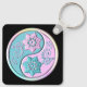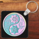 A yin yang symbol is designed with intricate floral patterns in pastel colors. The delicate flowers are complemented by swirling leaves inside the emblem.