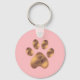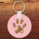 Pata marrom-branca de estimação com Chaveiro cor-de-rosa de coral. Ideal para amigos de cães e gatos!