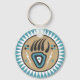 Design de pata de urso nativo americano em turquesa e bege com formas geométricas.