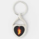 Pena de pavão brilhante feita de fogo e chamas sobre fundo negro.