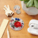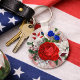 A striking floral arrangement featuring a bold red rose at the center, surrounded by soft white blossoms and deep blue rosebuds. Lush green foliage and textured red accents complete the composition, creating a balanced red, white, and blue palette. This elegant bouquet blends classic botanical beauty with a subtle patriotic theme, perfect for celebrations, holidays, and decorative designs.