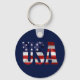 O texto dos EUA e a bandeira dos Estados Unidos da América, embutidos em cada carta. Dia da Independência Patriótica Produtos, presentes e lembranças de 4 de julho para qualquer um. Chaveiro. Você pode mudar a cor do fundo.