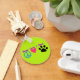 Gráfico bonito em cores néon coloridas. 3 símbolos - um sinal de paz, um coração e uma pata, com as palavras paz, amor e patas. Para os donos de animais de estimação que amam a paz.