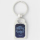 Chaveiro com o símbolo do zodíaco para Peixes em azul-prata suave, sobrepostos com as estrelas da constelação, contra um fundo do céu estrelado formando de azul-da-meia-noite a preto.
