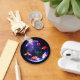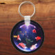 Tome um pequeno aquário bonitinho na sua chaveiro. Pequeno peixe-dourado-laranja bonito nadando nesta chaveiro portátil. Em cores azul, laranja branco e preto.