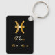 Chaveiro de sinal zodiaco elegante com design de ouro sobre fundo preto.