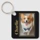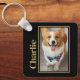 Honre seu amado companheiro e tesouro as memórias com um chaveiro personalizado de fotos memoriais, com um único coração de ouro e design de fronteira. Esta placa faz um presente sincero para si mesmo, família ou amigos, servindo como um belo tributo a um cachorro querido. Esperamos que este guardião lhe traga conforto, paz, e lembranças amáveis de seu amigo furioso. Adicione sua foto favorita. Fundo chic preto.