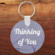 Diga a alguém especial que você está pensando neles com este sofisticado chaveiro, ainda que barato. Esta imagem apresenta ramos nus de inverno em um belo design de tom azul. O plano de fundo apresenta um padrão texturizado azul. Personalize o "pensamento de você" rápida e facilmente, se desejar.