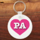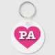 Este chaveiro apresenta um coração rosa-quente vibrante contendo as letras maiúsculas, brancas e em negrito PA, a abreviação oficial Pensilvânia, o estado-chave da pedra.
