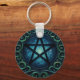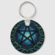 Este chaveiro de branco apresenta um ápice preto cercado por céus cósmicos azuis esverdeados acabados como impressão de tinta a óleo.