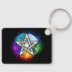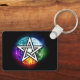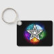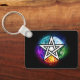Pentagrama luminoso desenhado artificialmente com cinco elementos mágicos, água, terra, fogo, astral, ar sobre fundo negro. Pentagrama Wiccan. Wicca